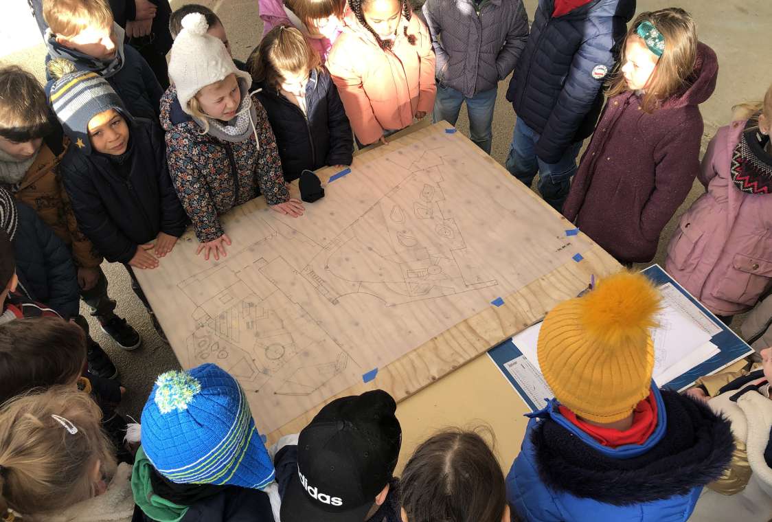 À chaque phase de travail (conception ou chantier), la participation de nombreux enfants nourrit le projet d'une belle énergie et ouvre sur de nouvelles idées pour le lieu.
