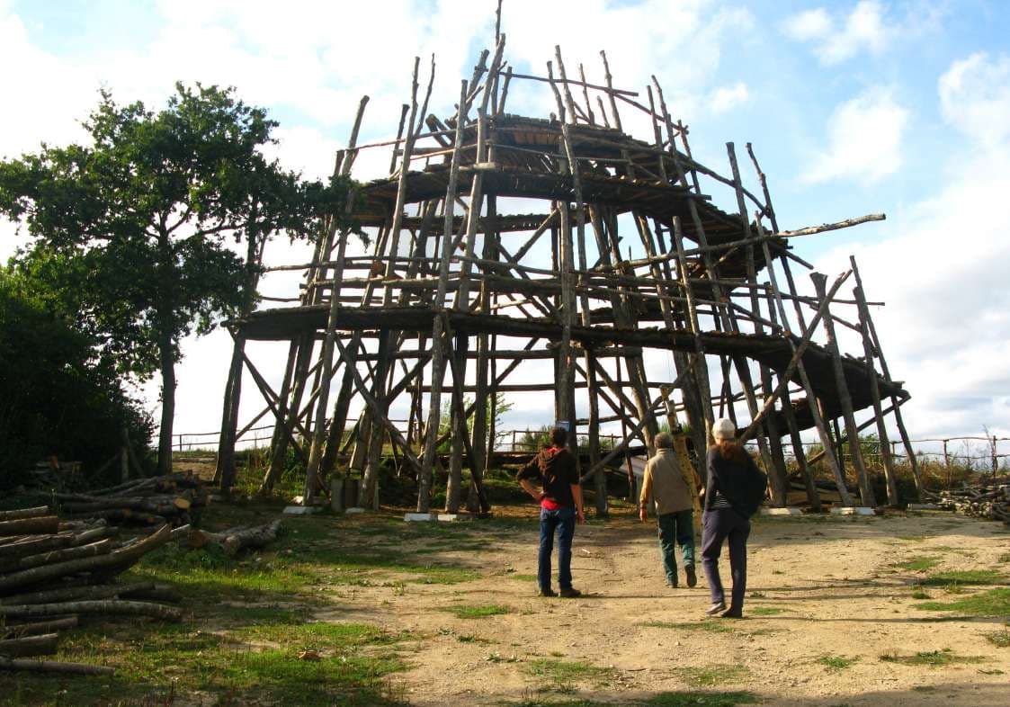 2012 — 2013Participation aux chantiers du Mur fantastique de Nicolas Polissky à Rieux : œuvre collective en bois réemployé, bâtie sur une ancienne motte féodale en bord de Vilaine.